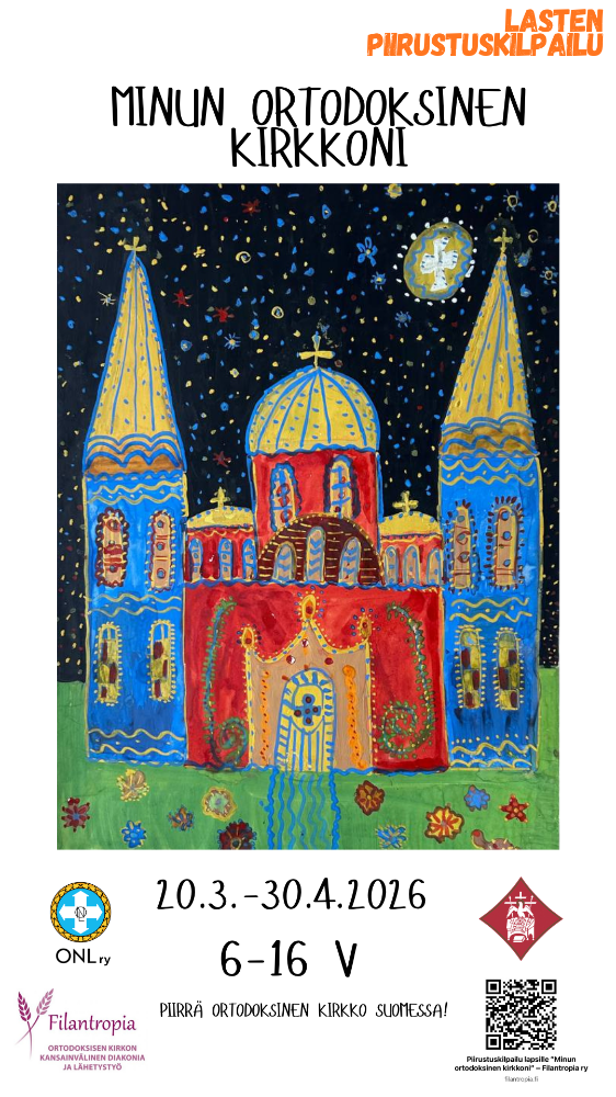 Filantropia ry sekä Ortodoksisten nuorten liitto ONL ry ja Suomen ortodoksinen kirkko julistavat avatuksi lasten piirustuskilpailun “Minun ortodoksinen kirkkoni”!