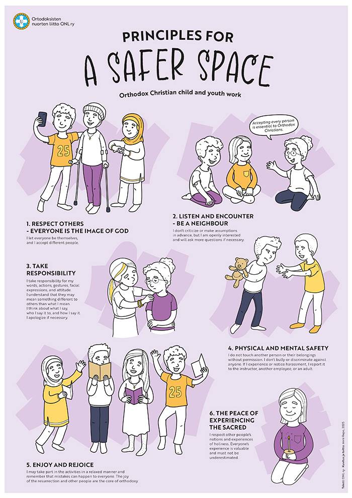 The principles for a safer space in Orthodox Christian child and youth work aim to ensure that participation in activities is as safe as possible for everyone, and to foster an environment where each individual can participate without fear of criticism or judgment.